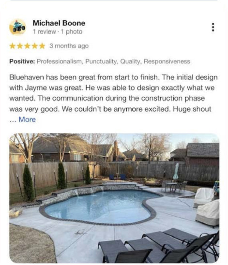 We post new project updates, construction photos, and swimming pool tips. Read reviews, and interact with our page! Look out for seasonal maintenance reminders and share pics of your beautiful Blue Haven Pool! We’d love for you to follow us for the latest on all things Blue Haven Pools!